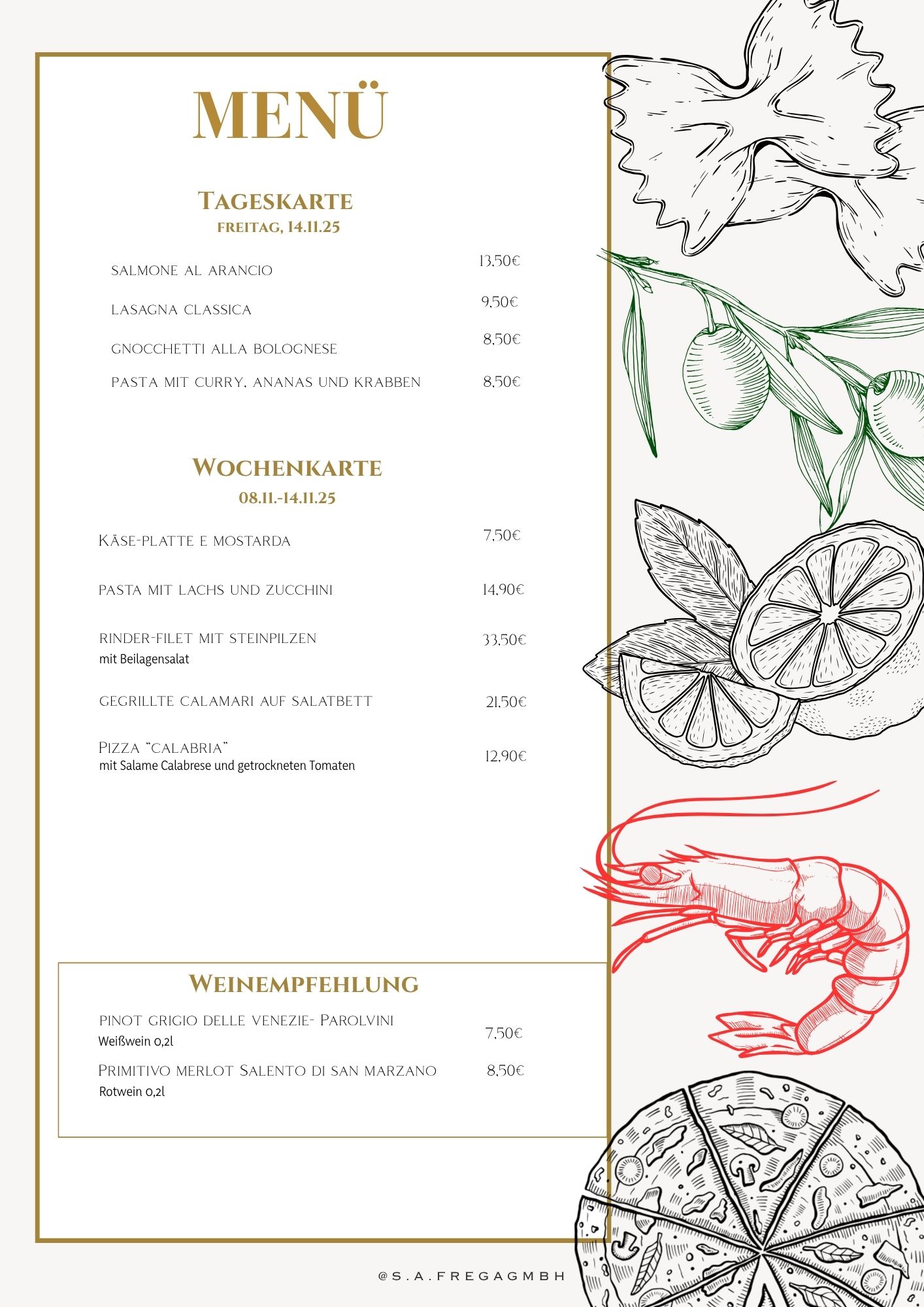 MENU GIORNALIERO (Tageskarte)Freitag, 14.11.2025 |