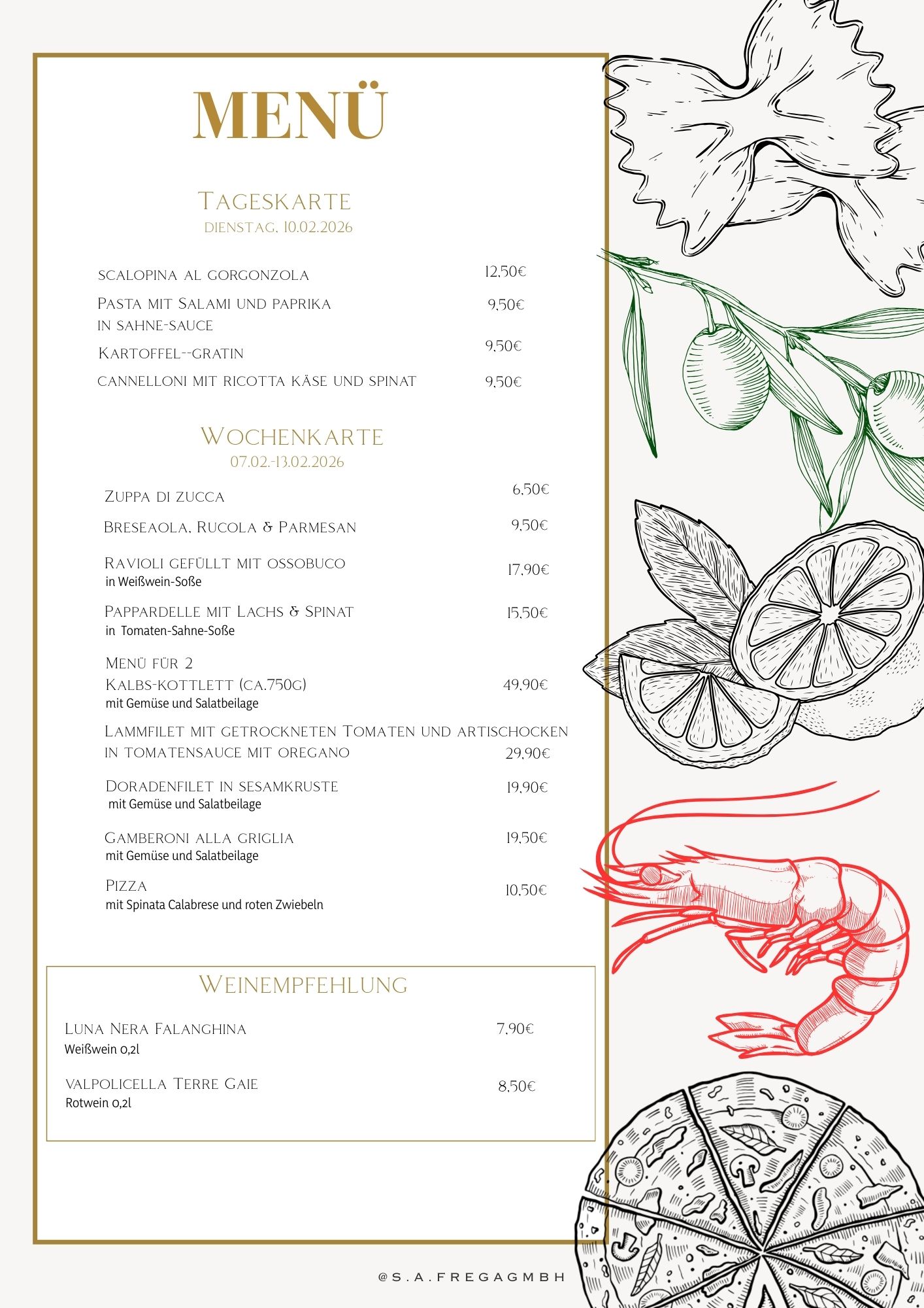 MENU GIORNALIERO (Tageskarte)Dienstag, 10.02.2026 |