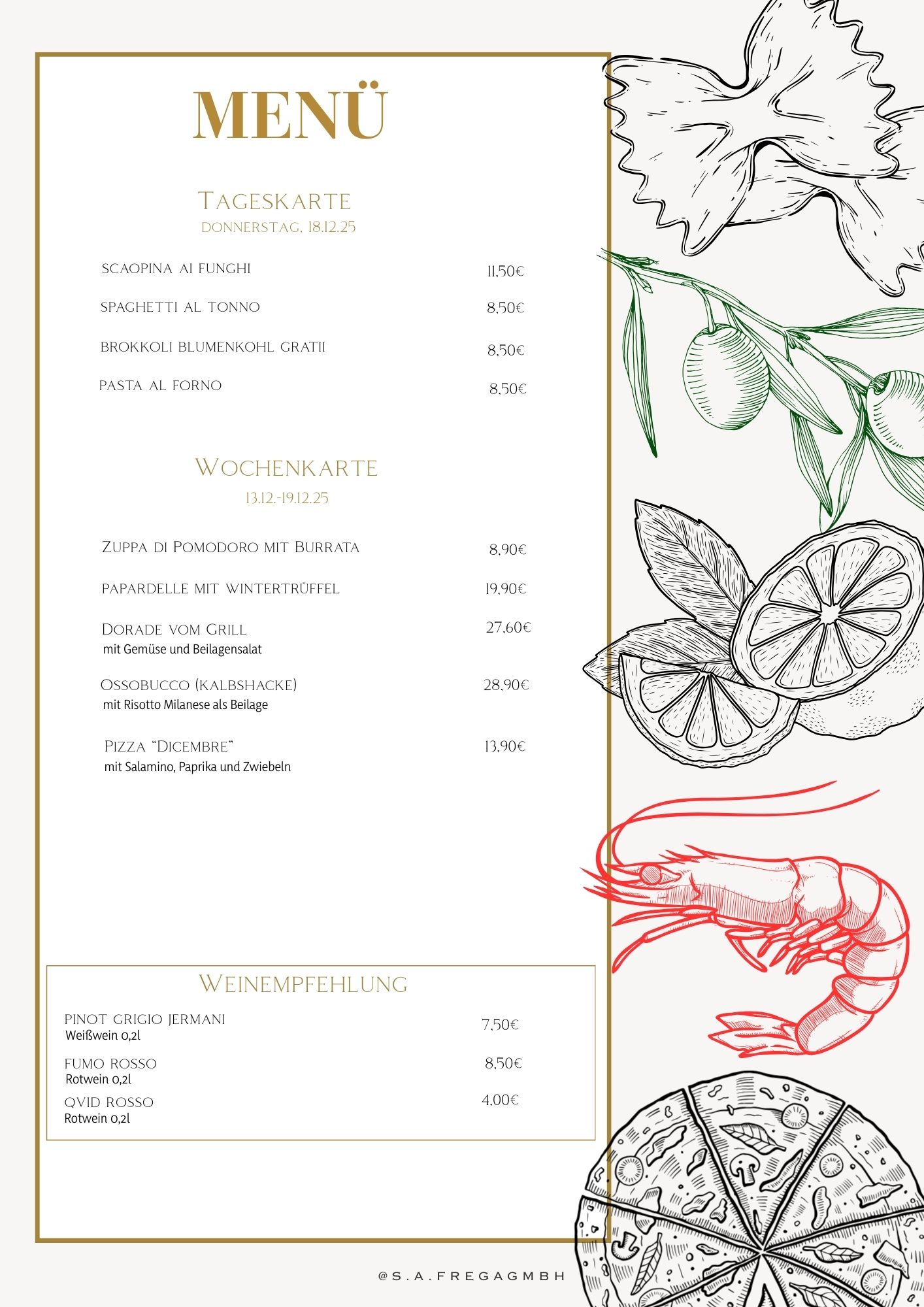 Unsere Homepage: mezzodirestaurant.de Reservierungen unter 0421 89785210 oder 0172 271 7719 |